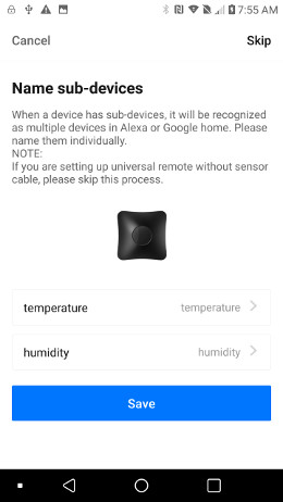 Picture 6: The RM4 Pro has optional temperature and humidity sensors embedded in the power cable. If your unit has these sensors, you can name them here or skip this step.
